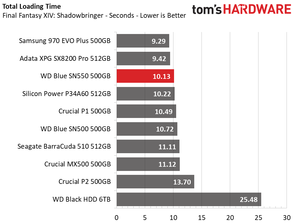 The Final Fantasy XIV Stormblood and Shadowbringers benchmarks are two free real-world game benchmarks that easily and accurately compare game load times without the inaccuracy of using a stopwatch.