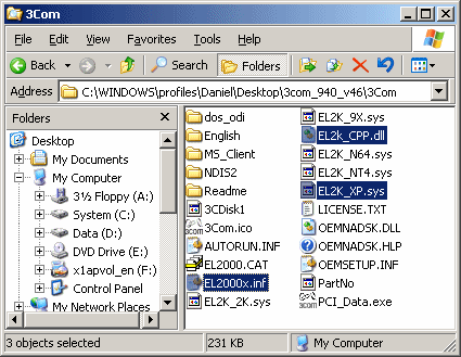 First, download the driver from the Asus FTP server and unpack it on the hard drive. Select only the files el2k_cpp.dll, el2k_xp.sys and el2000x.inf from the decompressed files and copy them to the plug-in directory nic_el2k_xp.