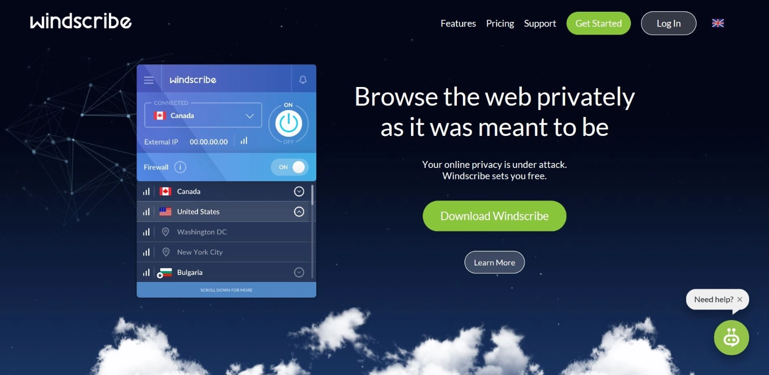 The provider has its own version of a kill switch called a firewall. In the event of a sudden VPN connection termination, Windscribe’s firewall jumps in and shuts down the entire Internet connection on your device, keeping your sensitive data safe beyond the reach of prying eyes. The firewall mechanism then immediately reestablishes the VPN connection.