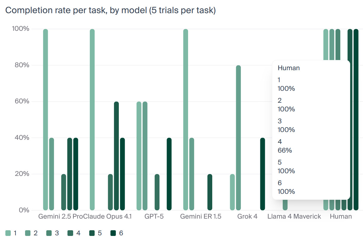 Butter Bench is pretty simple, at least for humans. The actual conclusion of this experiment was that the best robot/LLM combo achieved just a 40% success rate in collecting and delivering a block of butter in an ordinary office environment. It can also be concluded that LLMs lack spatial intelligence. Meanwhile, humans averaged 95% on the test.