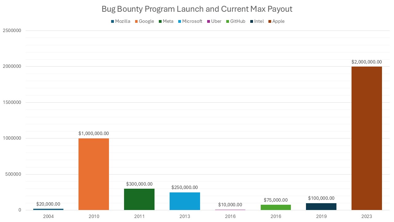 This isn’t the only bug bounty program anyone can participate in. AMD announced its own program last year, with a payout of up to $30,000, while Intel offers a maximum of $100,000. Microsoft’s maximum award at the moment is $250,000, and it has even lowered its age limit to 13 because of this high school junior who filed over 20 security vulnerability reports last summer. Meta launched a bug bounty program in 2011 and now offers a maximum bug bounty of $300,000 (with $25,000,000 awarded to date). And last, but not least, Google began its Vulnerability Reward Program (VRP) in 2010. The search giant’s rewards vary from a few hundred dollars to a million dollars for the most serious vulnerabilities on its Titan M security chip. The company paid $11.8 million in 2024 to 660 researchers, bringing the average award to $17,800 per head.