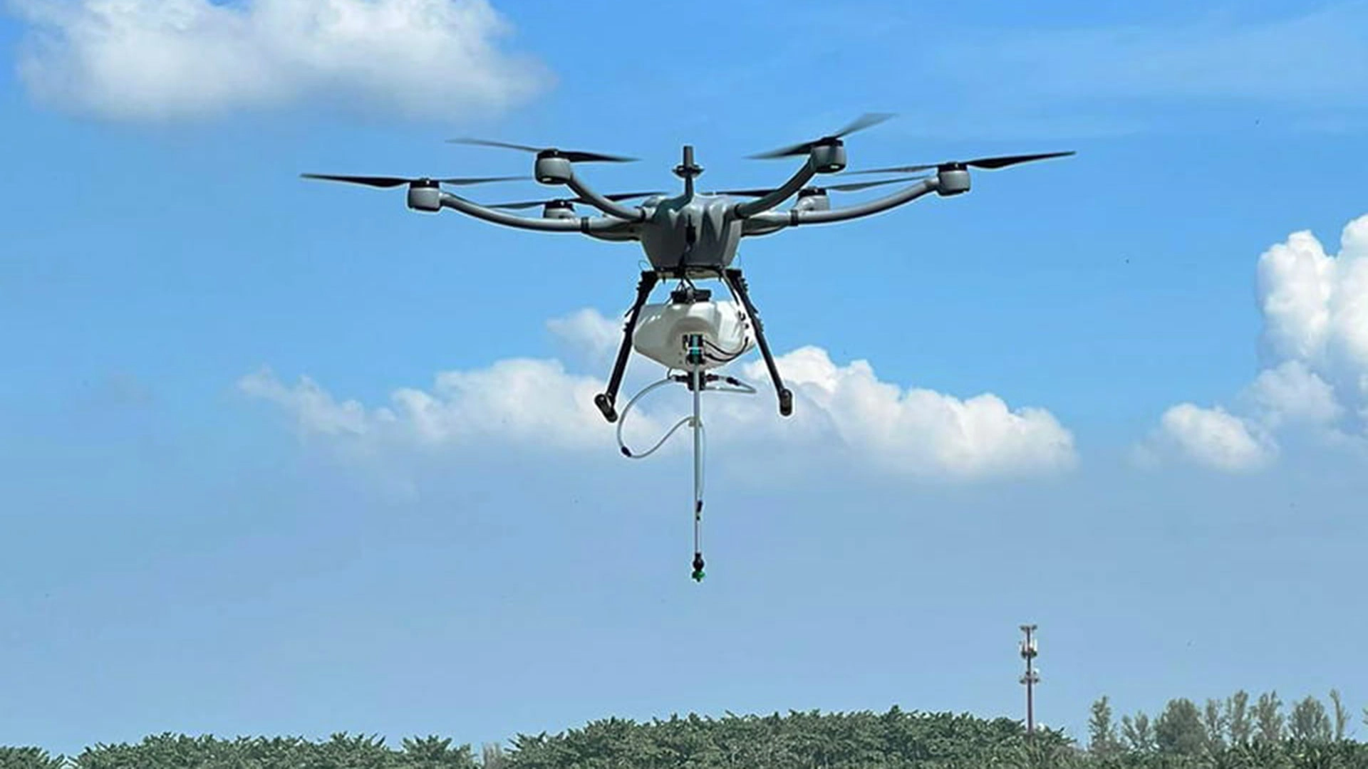 Terra Drone has previously demonstrated a similar pesticide packing drone for farms. It is claimed to be accurate enough to spray areas with an accuracy of within a 10cm radius.