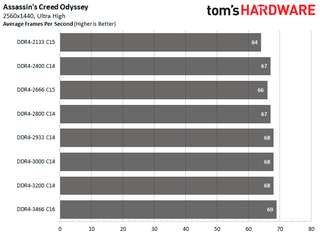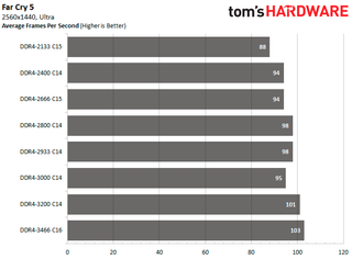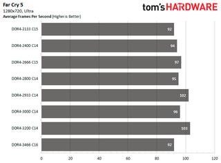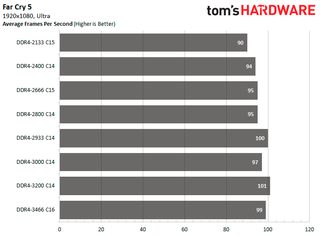DDR4-3466 C16 is the fastest configuration for both Assassin's Creed Odyssey and Far Cry 5. It's 7.81 percent and 17.05 percent faster than DDR4-2133 C15 in the respective titles.